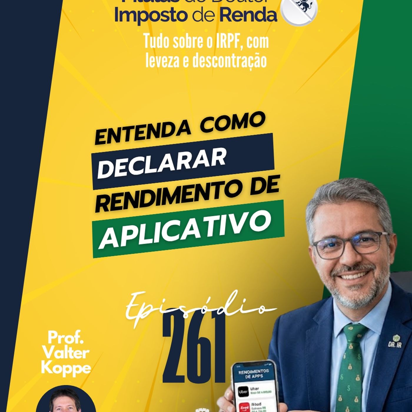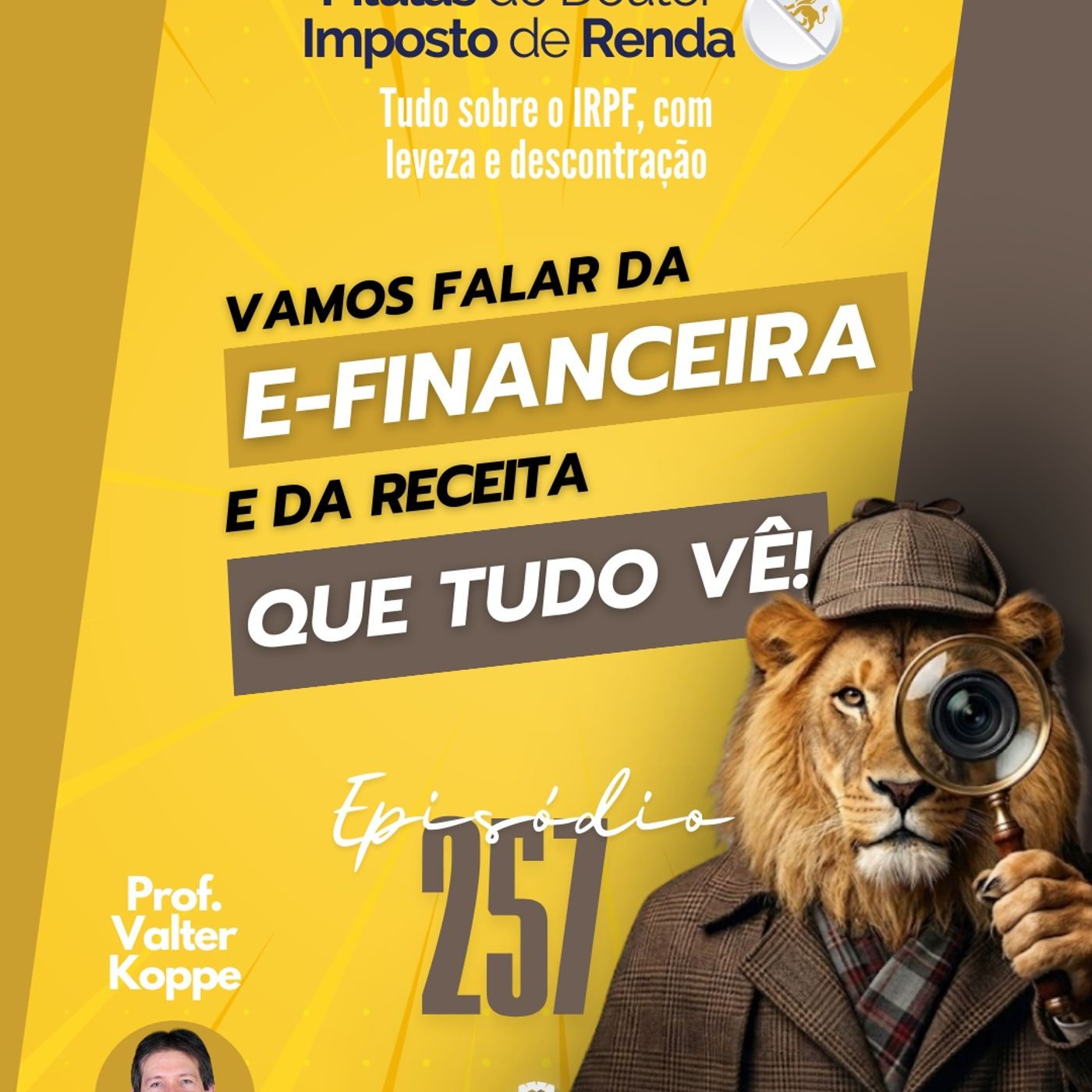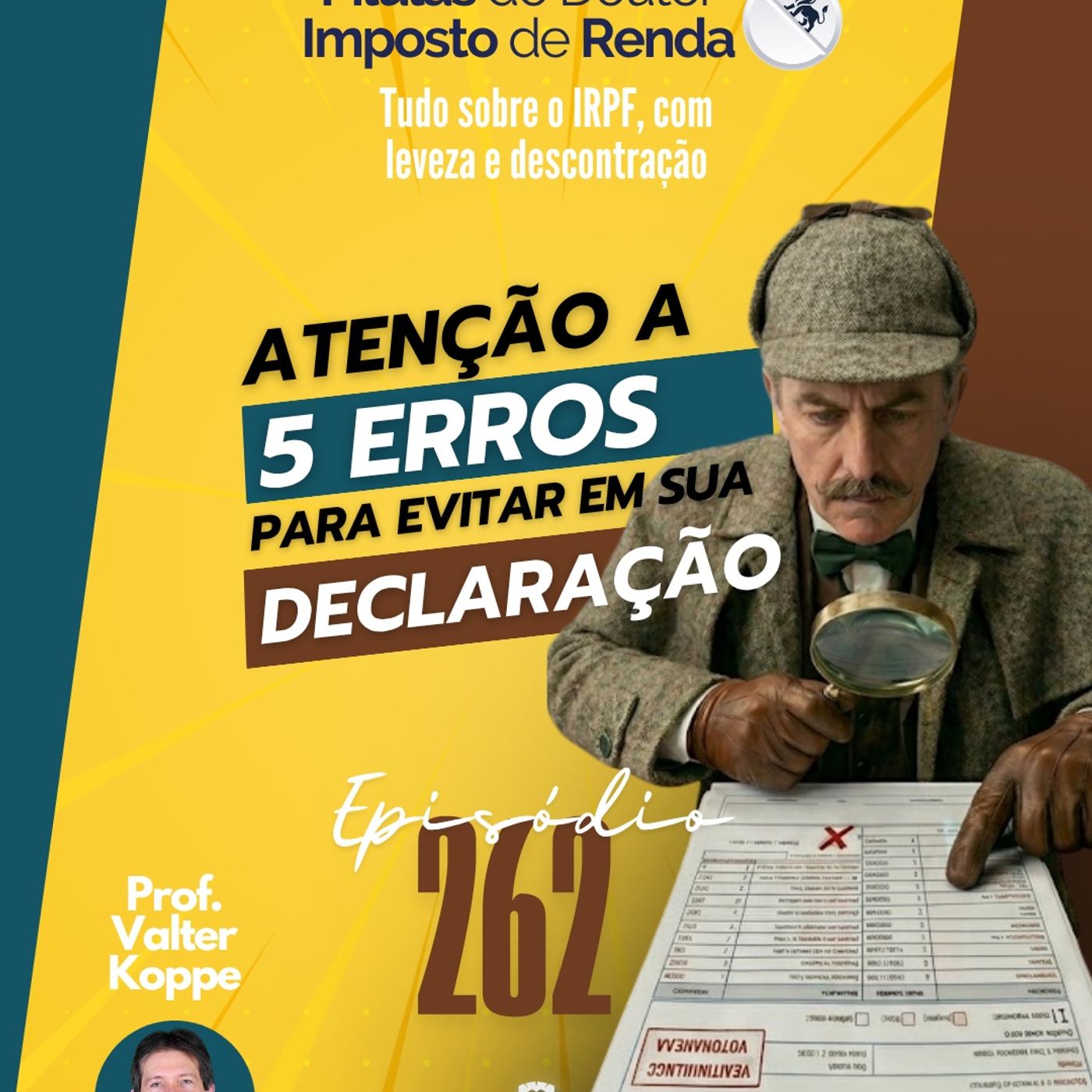 O prof. Valter Koppe, Auditor-Fiscal aposentado, coloca à disposição dos ouvintes sua experiência de mais de 30 anos sobre Imposto de Renda da Pessoa Física, sendo 25 deles junto à Receita Federal, oferecendo dicas, notícias, orientações e informações úteis de um jeito descontraído e fácil de entender. Episódios curtos com grandes conteúdos! Novos episódios toda semana!